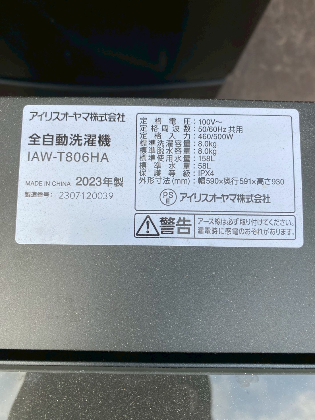 埼玉県川口市でアイリスオーヤマ8.0kg洗濯機を出張買取|IAW-T806HA(2023年製)