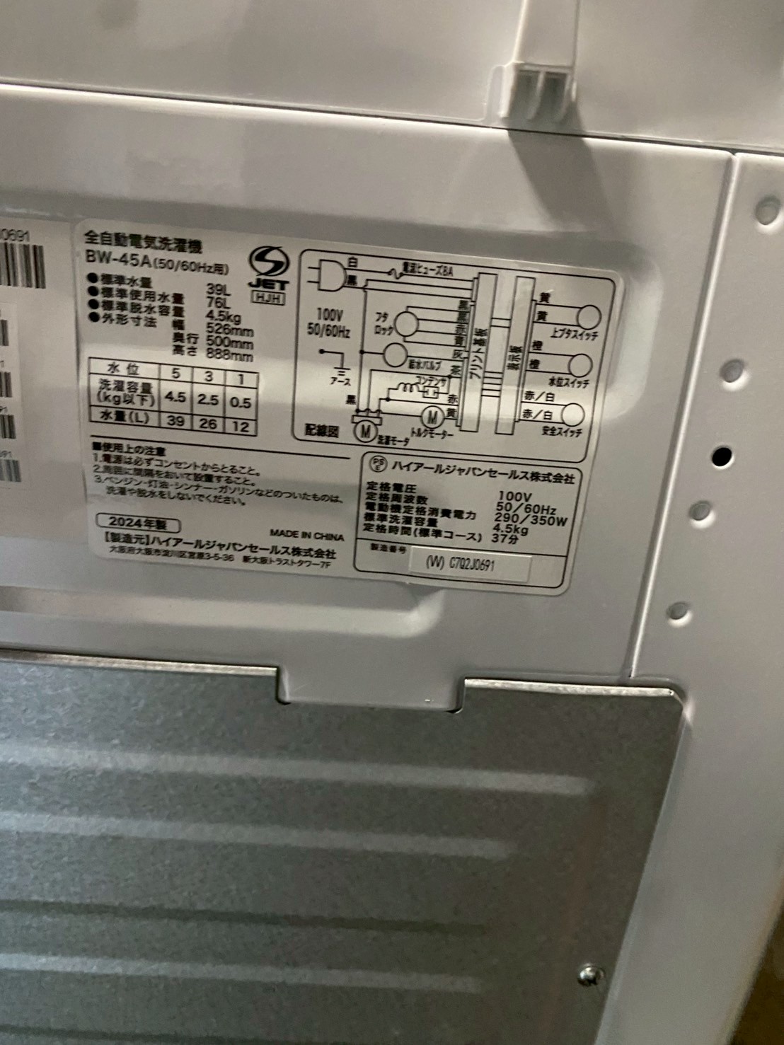 【埼玉県川口市】Haier(ハイアール)の洗濯機(4.5kg)を出張買取しました|BW-45A 2024年製
