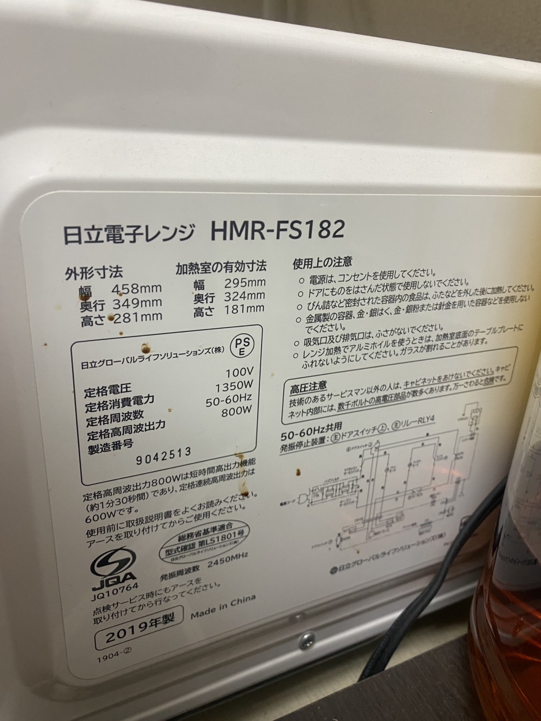 【東京都板橋区】HITACHI(日立)電子レンジ(50HZ/60HZ)を出張買取しました|HMR-FS182 2019年製