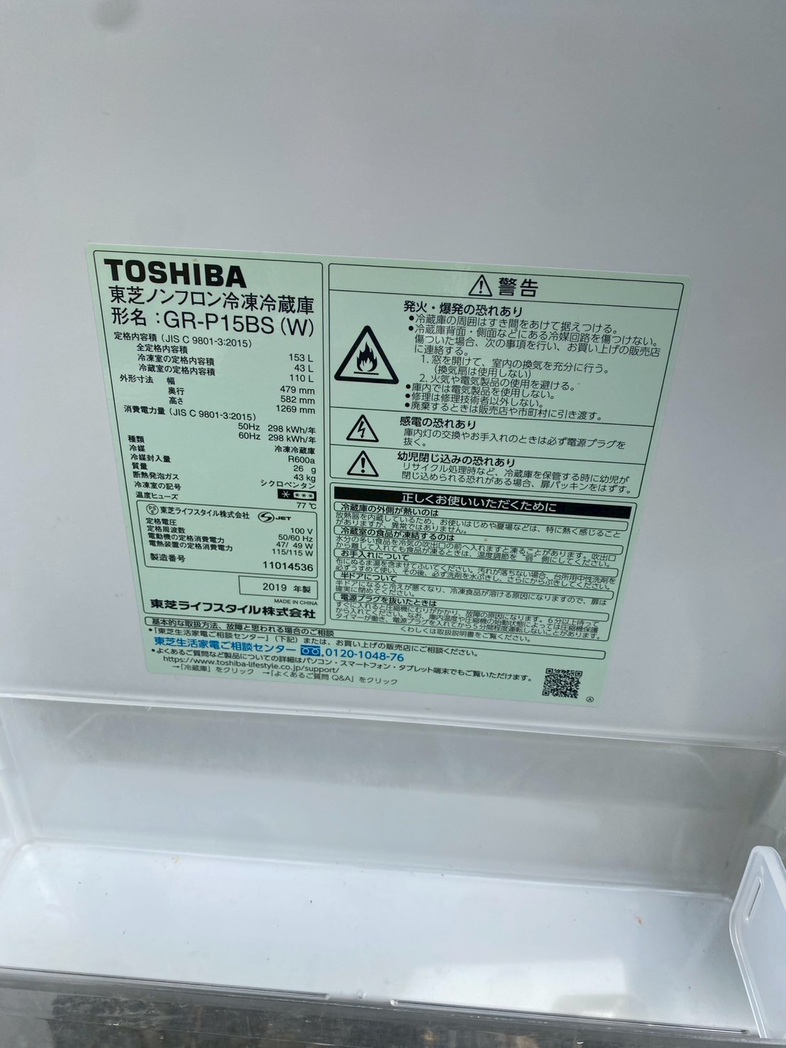 埼玉県蕨市にてTOSHIBA(東芝)2ドア冷蔵庫を出張買取|GR-P15BS(W) 2022年製