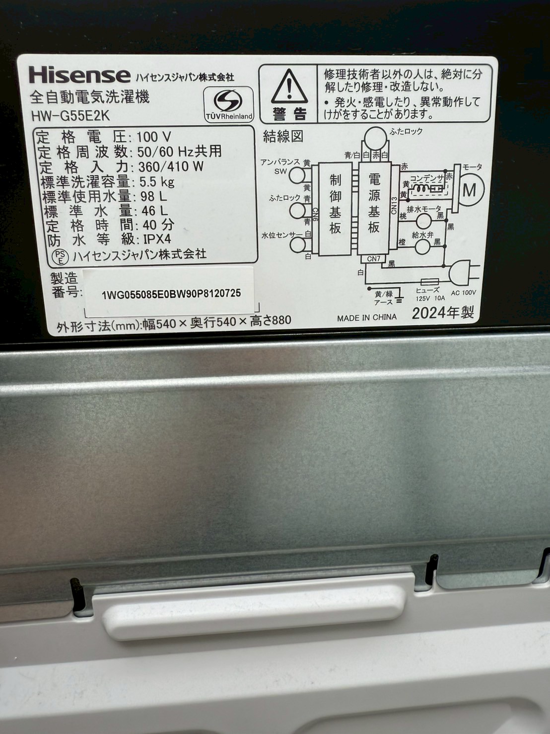 東京都板橋区にて、Hisense(ハイセンス)製の洗濯機 HW-G55E2K(2024年製)を出張買取いたしました。