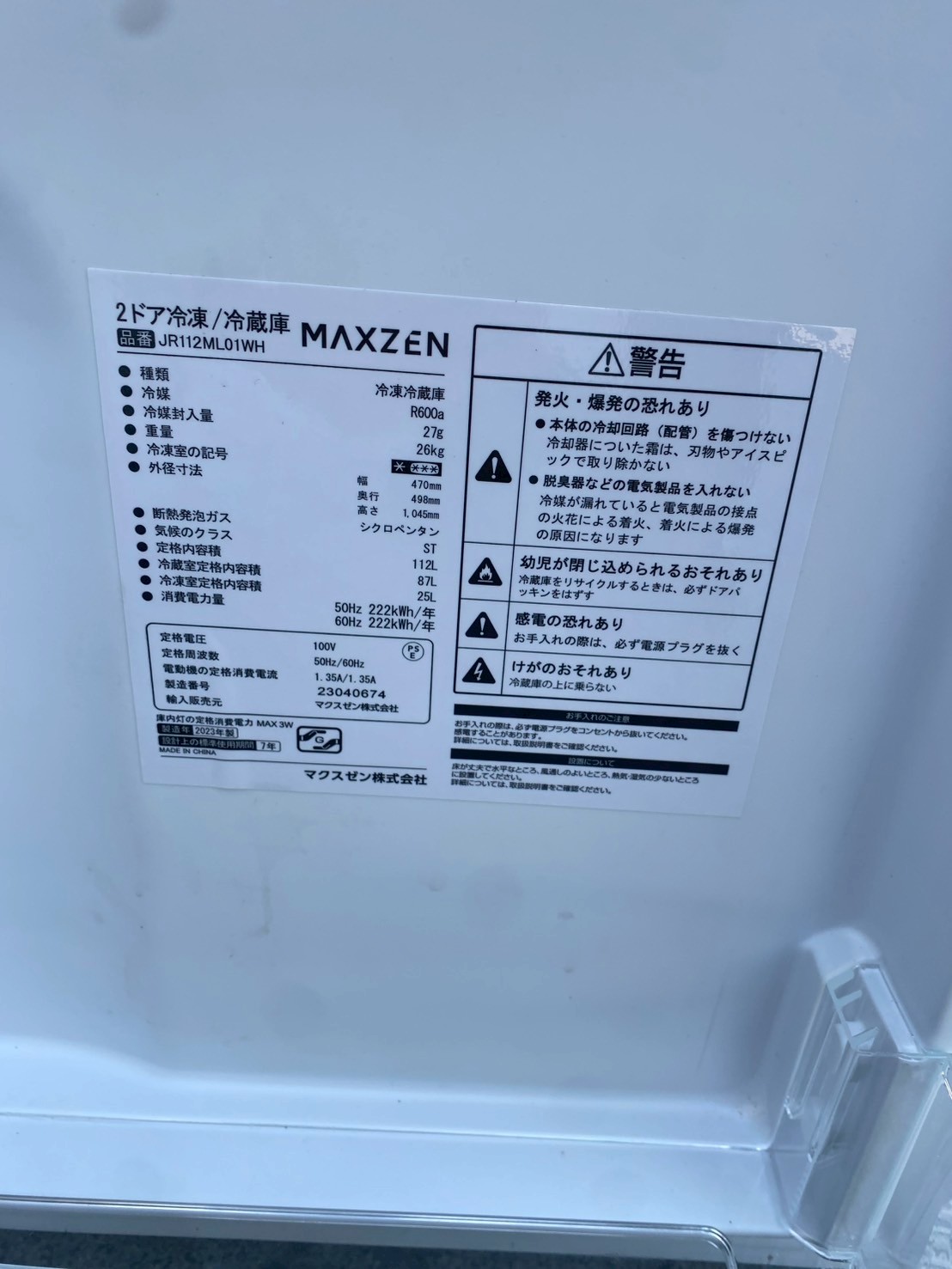 【2023年製】MAXZEN(マクスゼン)2ドア冷蔵庫 JR112ML01WHを出張買取|埼玉県川口市