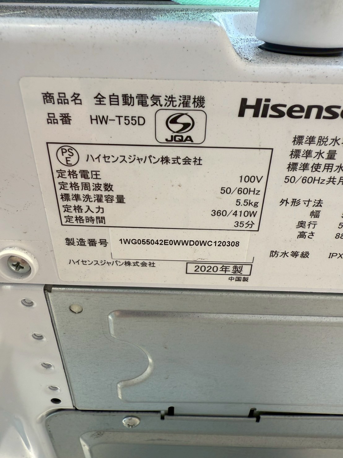 【2020年製】Hisense(ハイセンス)洗濯機 HW-T55Dを出張買取|埼玉県戸田市