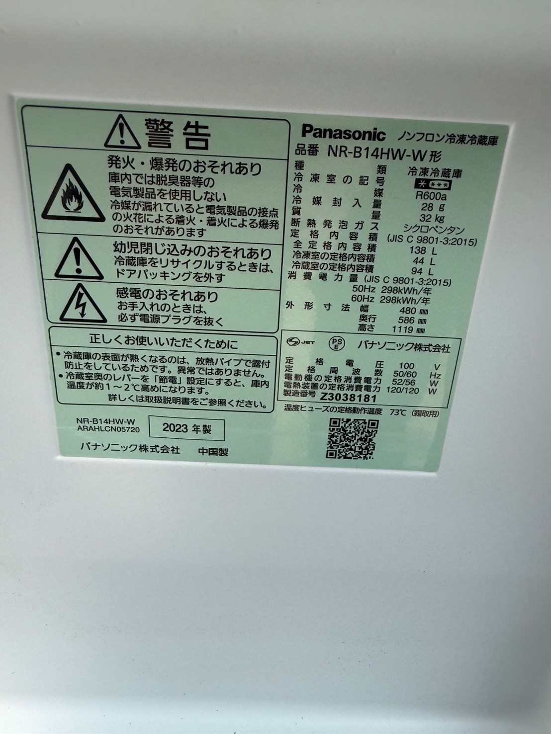 【2023年製】Panasonic(パナソニック)2ドア冷蔵庫 NR-B14HW-Wを埼玉県さいたま市浦和区で出張買取