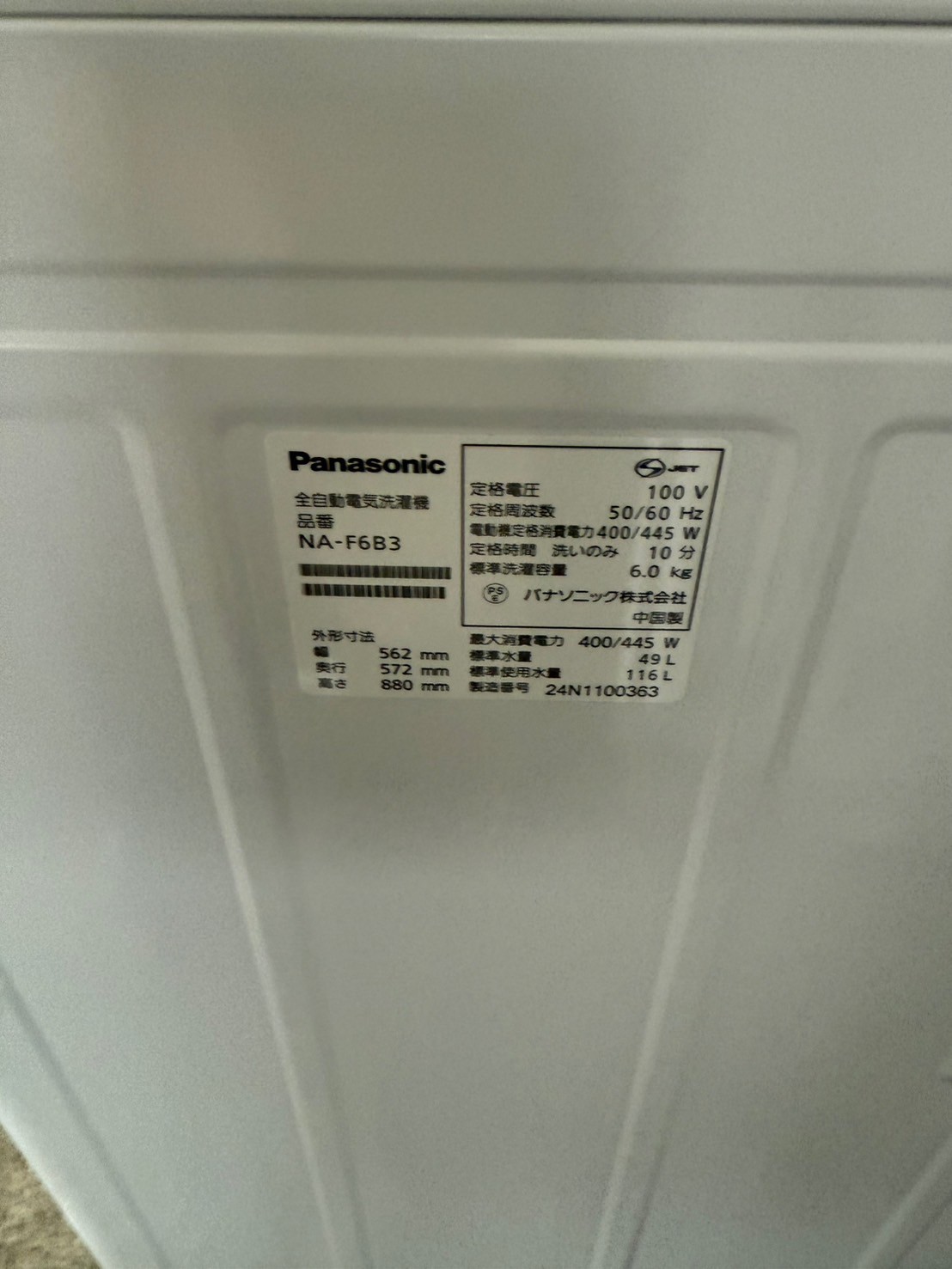 【出張買取 川口市】埼玉県川口市にてPanasonic(パナソニック)洗濯機 NA-F6B3 6.0kg(2024年製)を高価出張買取しました!