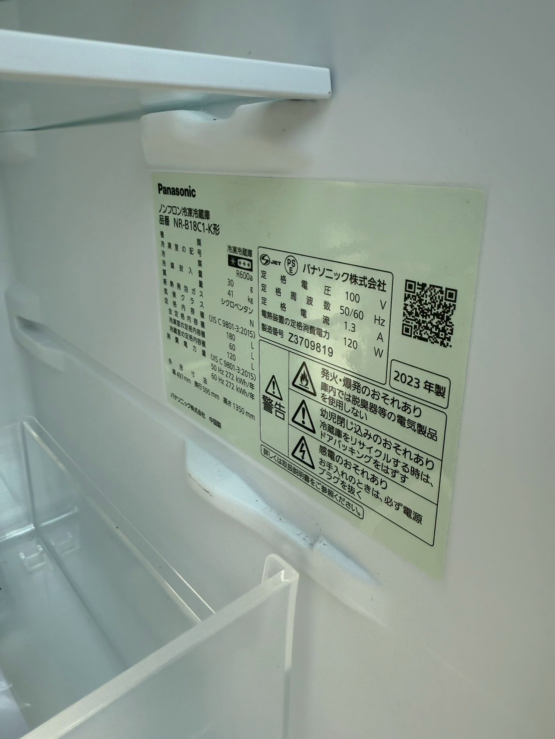 埼玉県蕨市にてPanasonic(パナソニック)2ドア冷蔵庫 NR-B18C1-Kを出張買取しました
