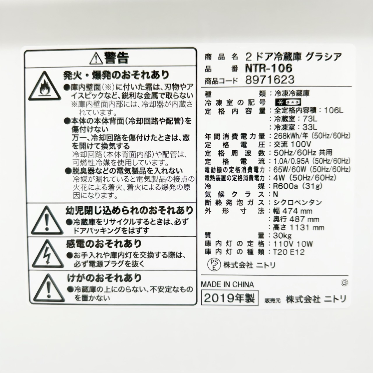 東京埼玉のリサイクルショップ 出張買取 BUY LINK | 【出張買取 さいたま市】ニトリ 2ドア冷蔵庫 NTR-106 2019年製を出張買取 埼玉県さいたま市緑区 - 東京埼玉のリサイクルショップ 出張買取 BUY LINK