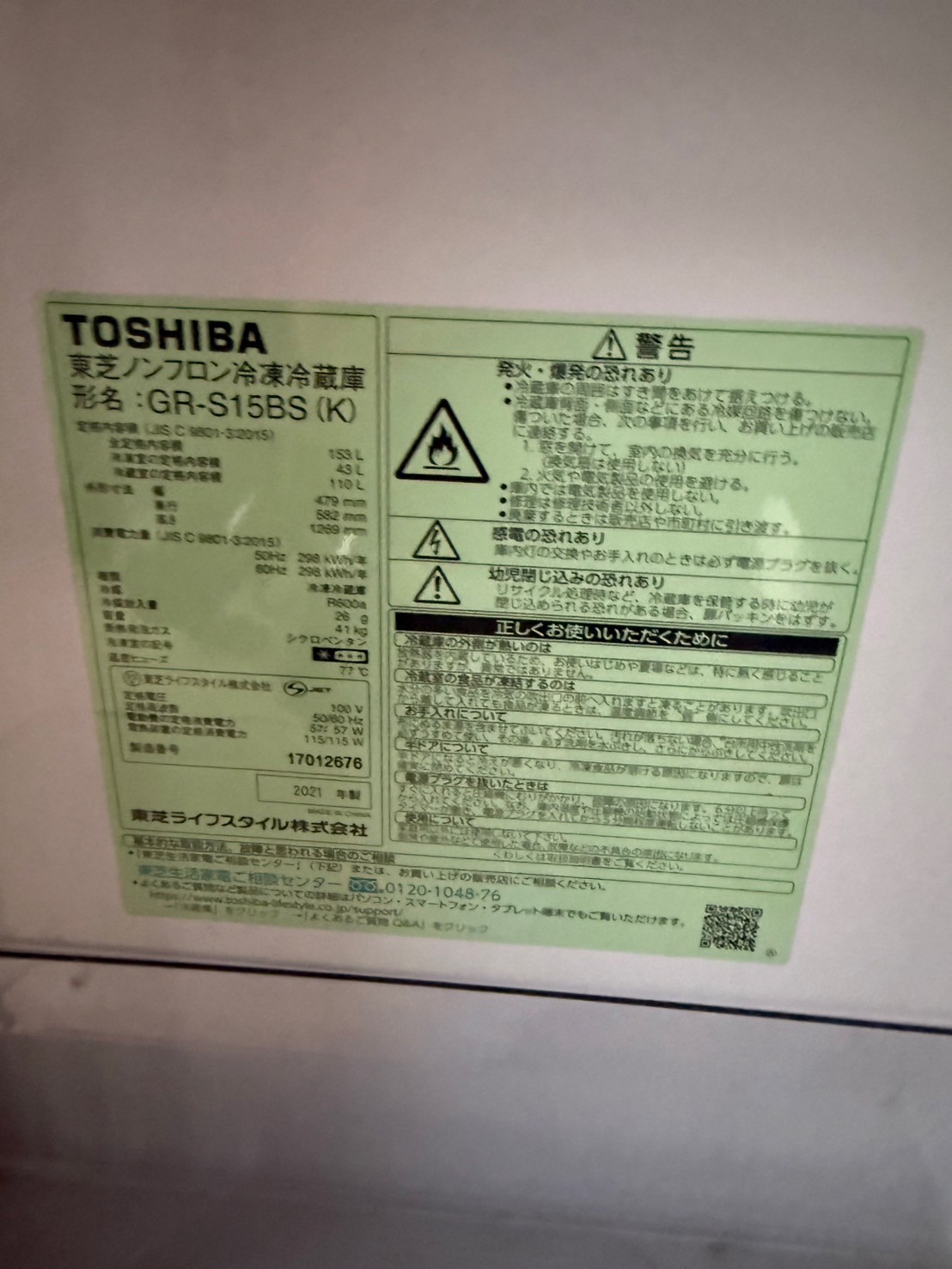 埼玉県川口市にて東芝 2ドア冷蔵庫 GR-S15BS(K)2021年製を出張買取いたしました