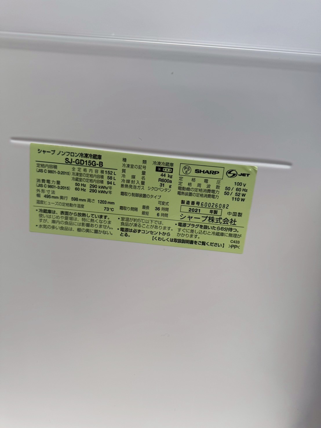 埼玉県川口市にてSHARP(シャープ)2ドア冷蔵庫 SJ-GD15G-B 2021年製を出張買取いたしました