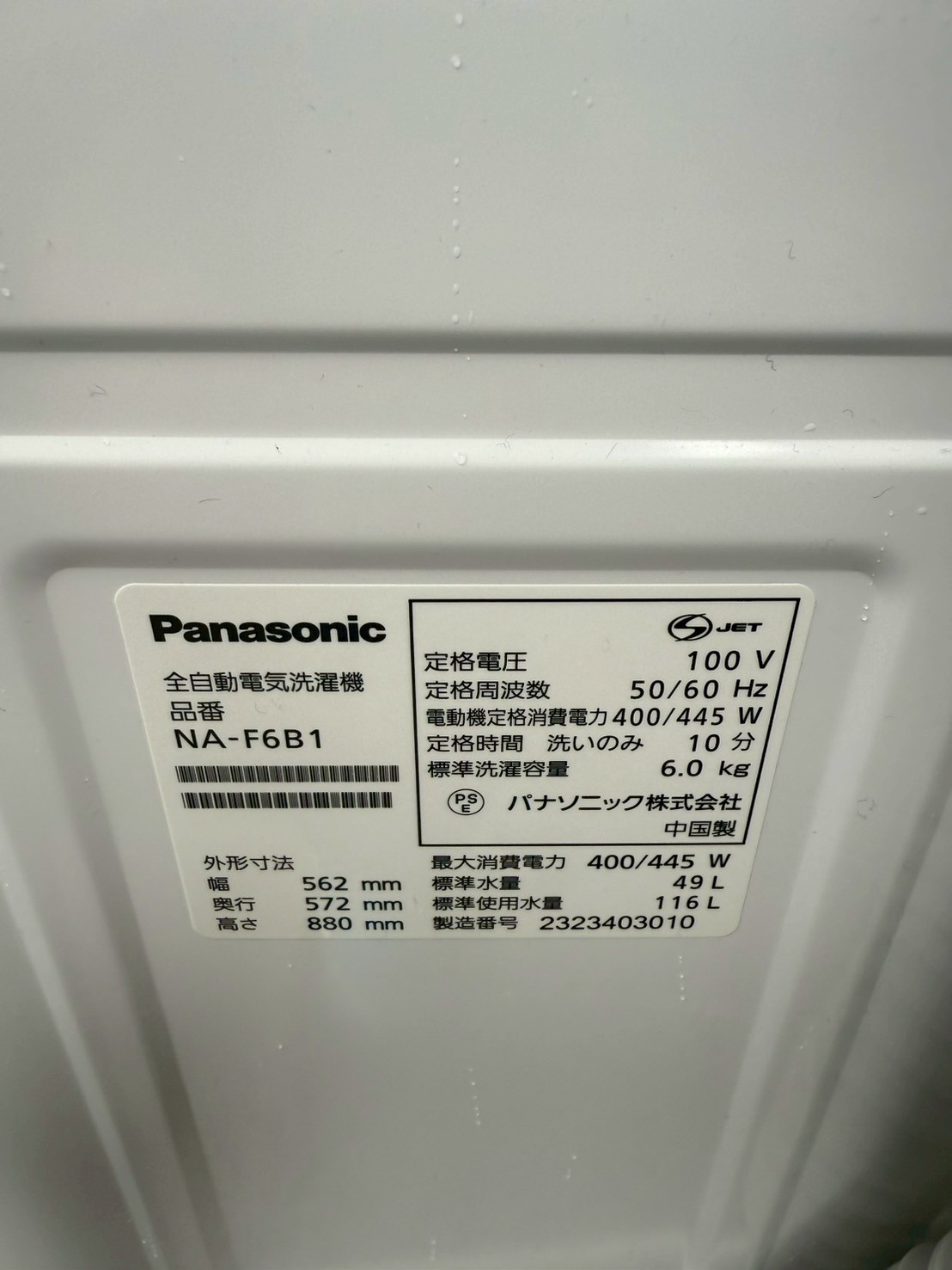 状態の良いPanasonic 洗濯機 NA-F6B1 2023年製を埼玉県川口市にて出張買取いたしました。