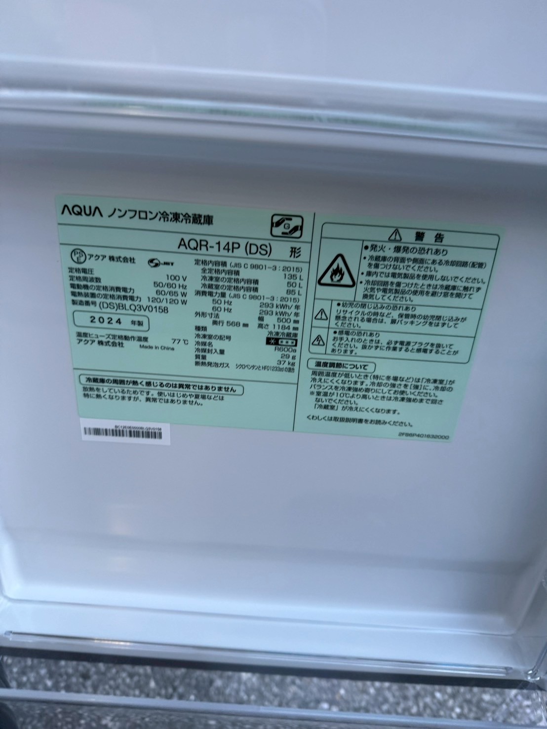 東京埼玉のリサイクルショップ 出張買取 BUY LINK | AQUA 2ドア冷蔵庫 AQR-14P(DS)2024年製を出張買取 |埼玉県川口市出張買取事例 - 東京埼玉のリサイクルショップ 出張買取 BUY LINK