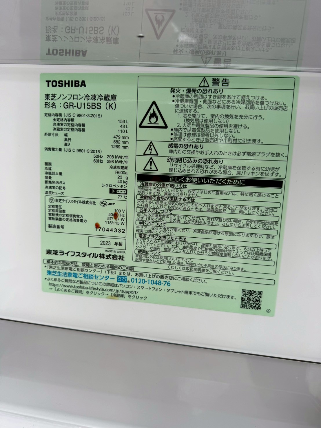 【川口市 出張買取】東芝 2ドア冷蔵庫 GR-U15BS(K)2023年製を出張買取
