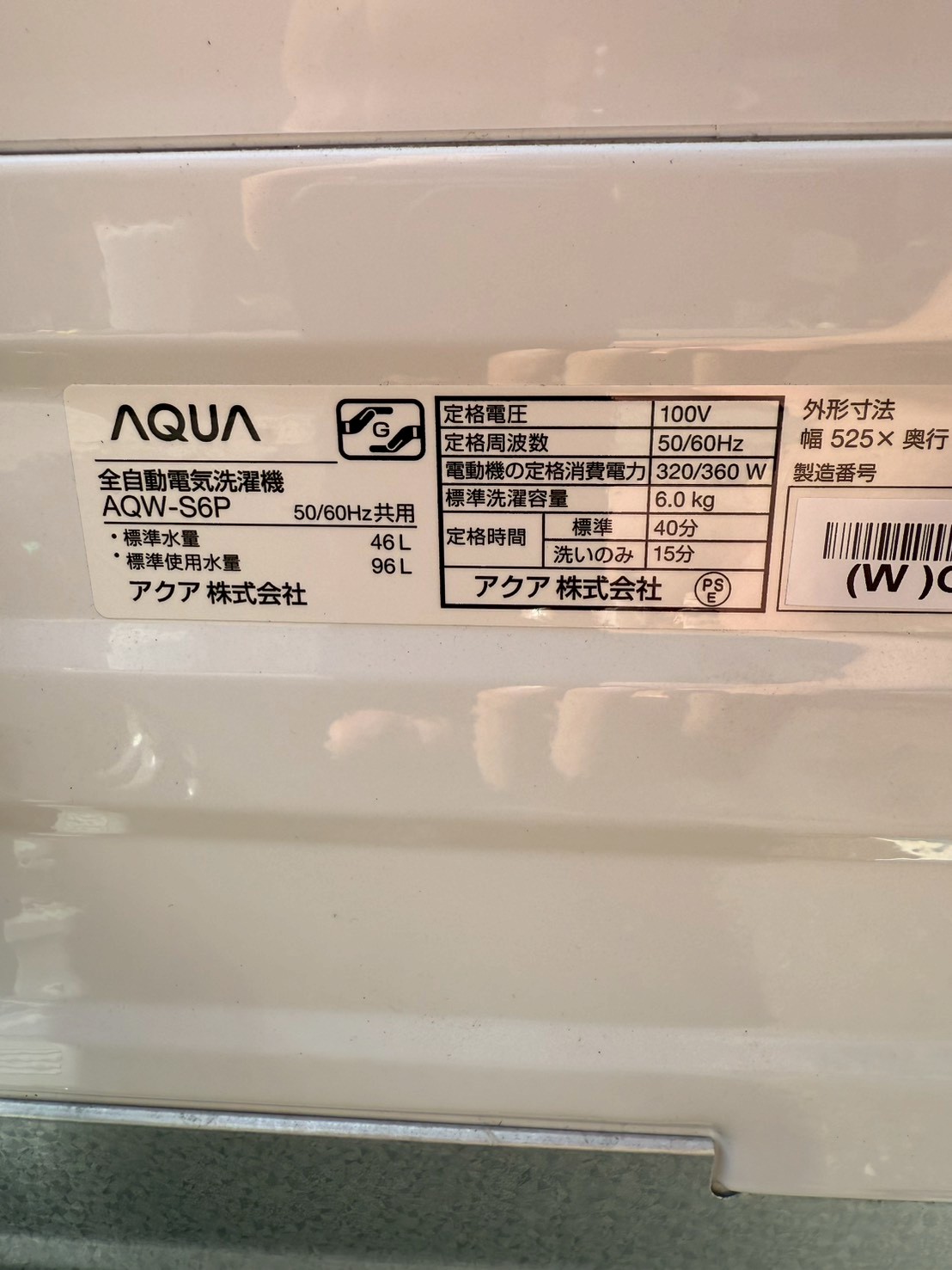 美品の洗濯機を出張買取いたしました|AQUA AQW-S6P 2024年製 |埼玉県川口市 出張買取