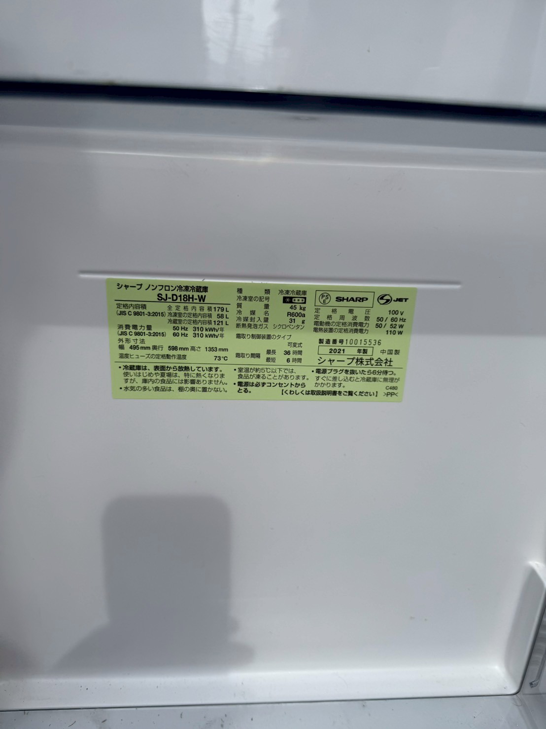 【出張買取 川口市】SHARP 2ドア冷蔵庫 SJ-D18H-W 2021年製を出張買取しました!