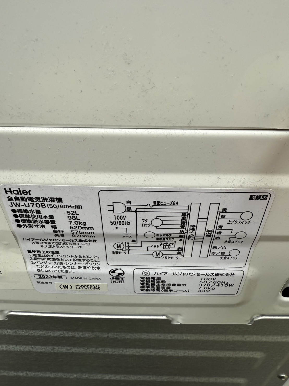 東京埼玉のリサイクルショップ 出張買取 BUY LINK | 【川口市での出張買取】Haier 7.0kg 洗濯機 JW-U70B 2023年製を出張買取いたしました - 東京埼玉のリサイクルショップ 出張買取 BUY LINK