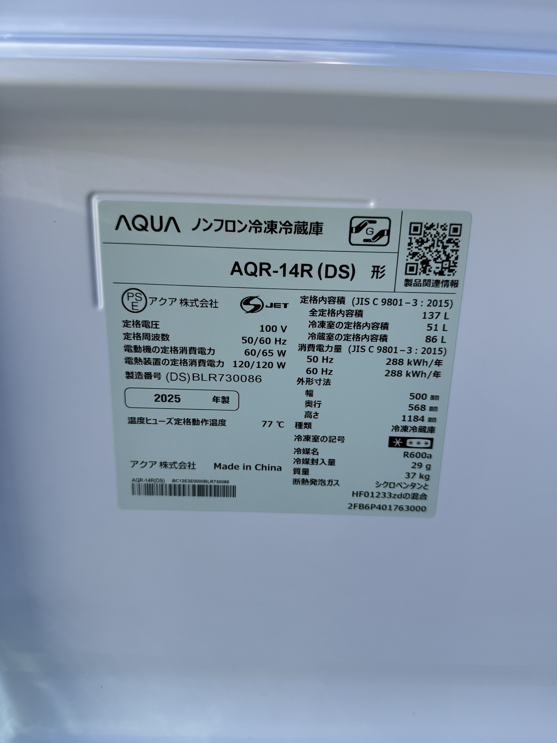 【川口市 出張買取】超美品!AQUA 137L冷蔵庫 AQR-14R(DS) 2025年製を高価買取しました!