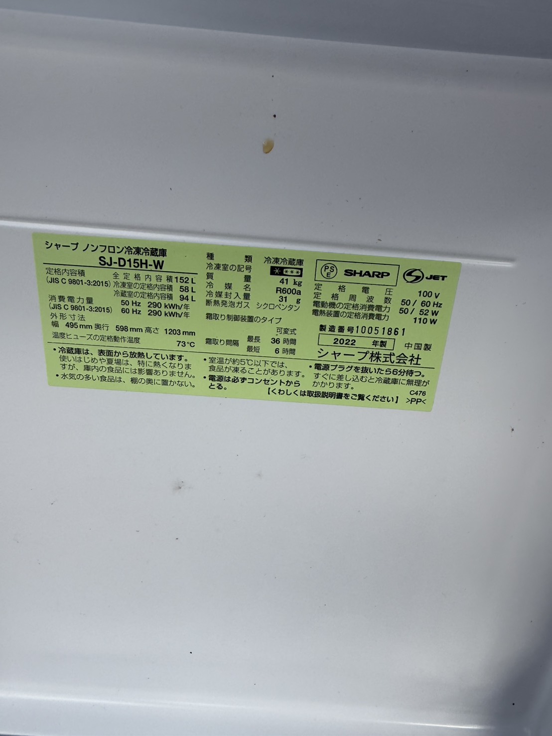 東京埼玉のリサイクルショップ 出張買取 BUY LINK | 埼玉県川口市にて SHARP 2ドア冷蔵庫 SJ-D15H-W 2022年製を出張買取いたしました|引越しに伴うご依頼 - 東京埼玉のリサイクルショップ 出張買取 BUY LINK