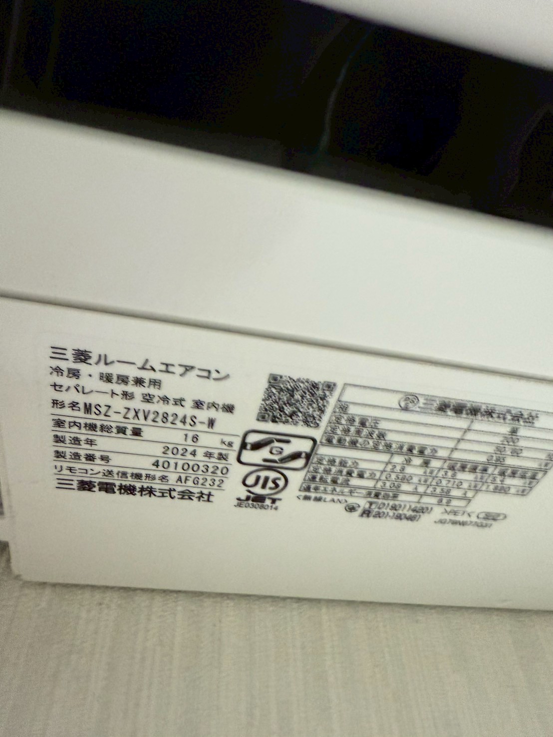 【高年式・取り外し対応】川口市にて三菱お掃除機能付きエアコン MSZ-ZXV2824S-W 2024年製を出張買取しました