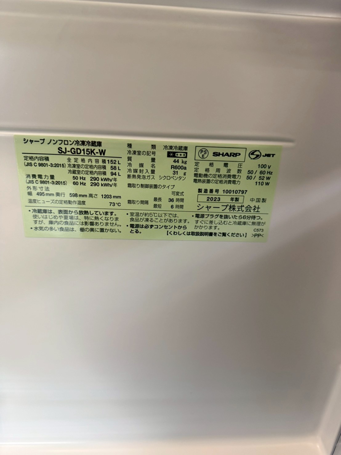【東京都 板橋区 出張買取】SHARP SJ-GD15K-W(2023年製)| ガラストップ プラズマクラスター冷蔵庫を出張買取