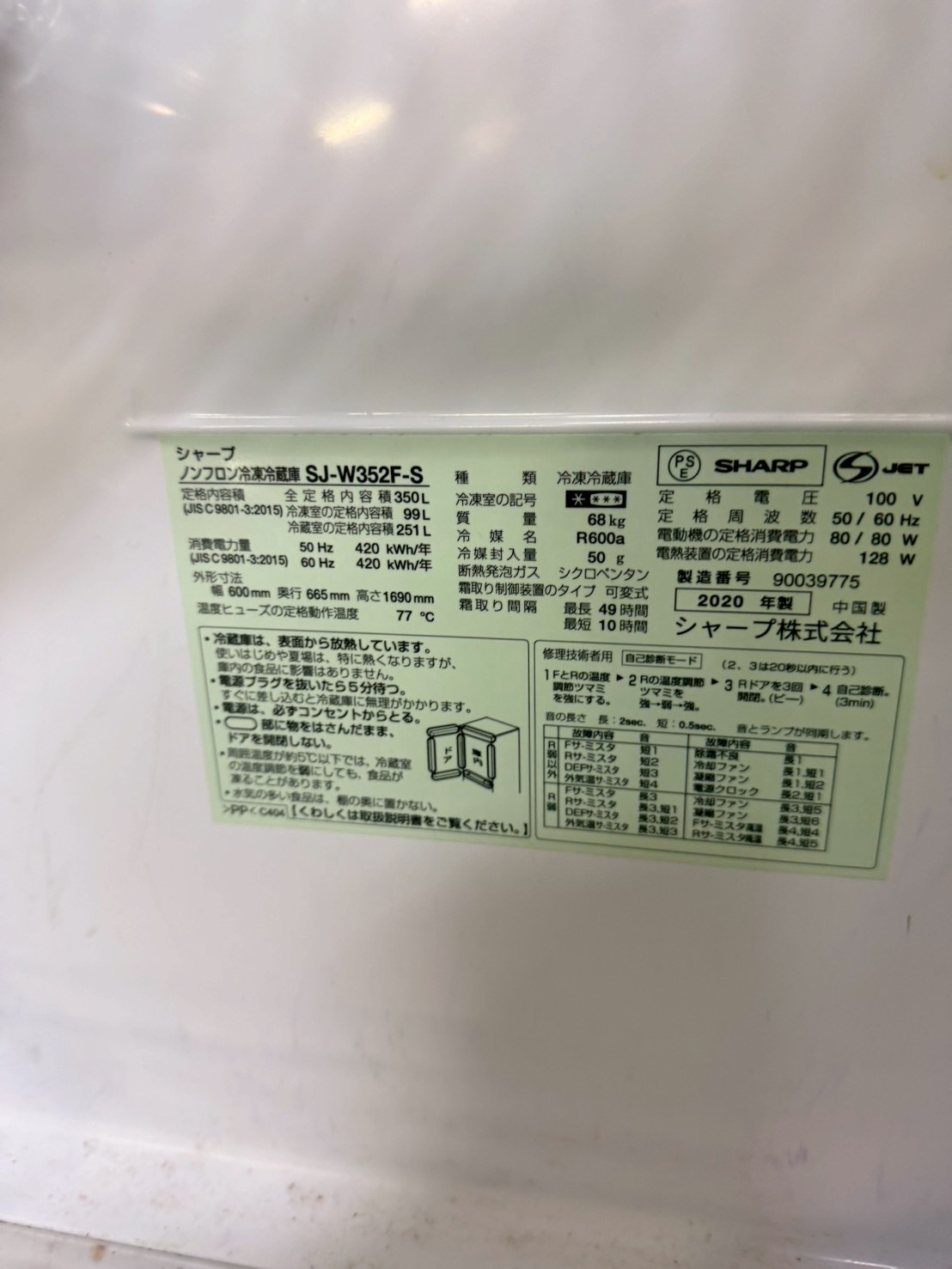 【埼玉県蕨市】SHARP 3ドア冷蔵庫 SJ-W352F-S(2020年製・350L)を出張買取