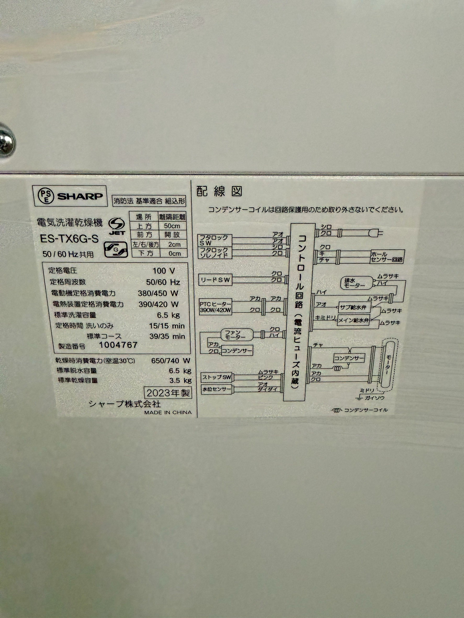 【東京都中野区】SHARP 縦型洗濯機 ES-TX6G-S(2023年製・6.5kg)を出張買取