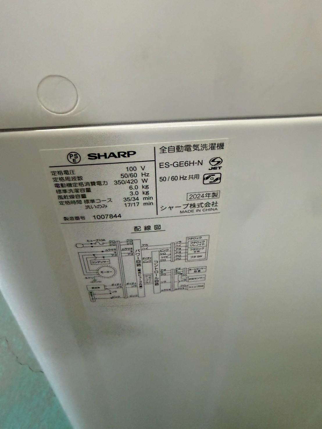 【東京都板橋区】SHARP 縦型洗濯機 ES-GE6H-N(2024年製・6.0kg)を出張買取しました
