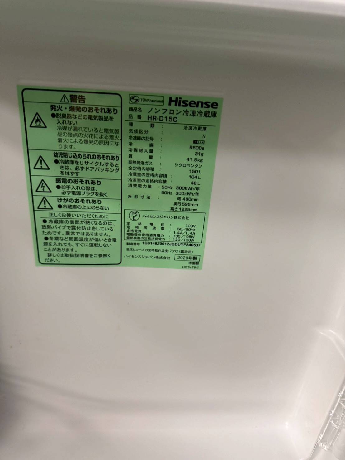 【埼玉県草加市】Hisense 2ドア冷蔵庫 HR-D15C(2020年製・150L)を出張買取しました|5年以上経過でも出張無料引取