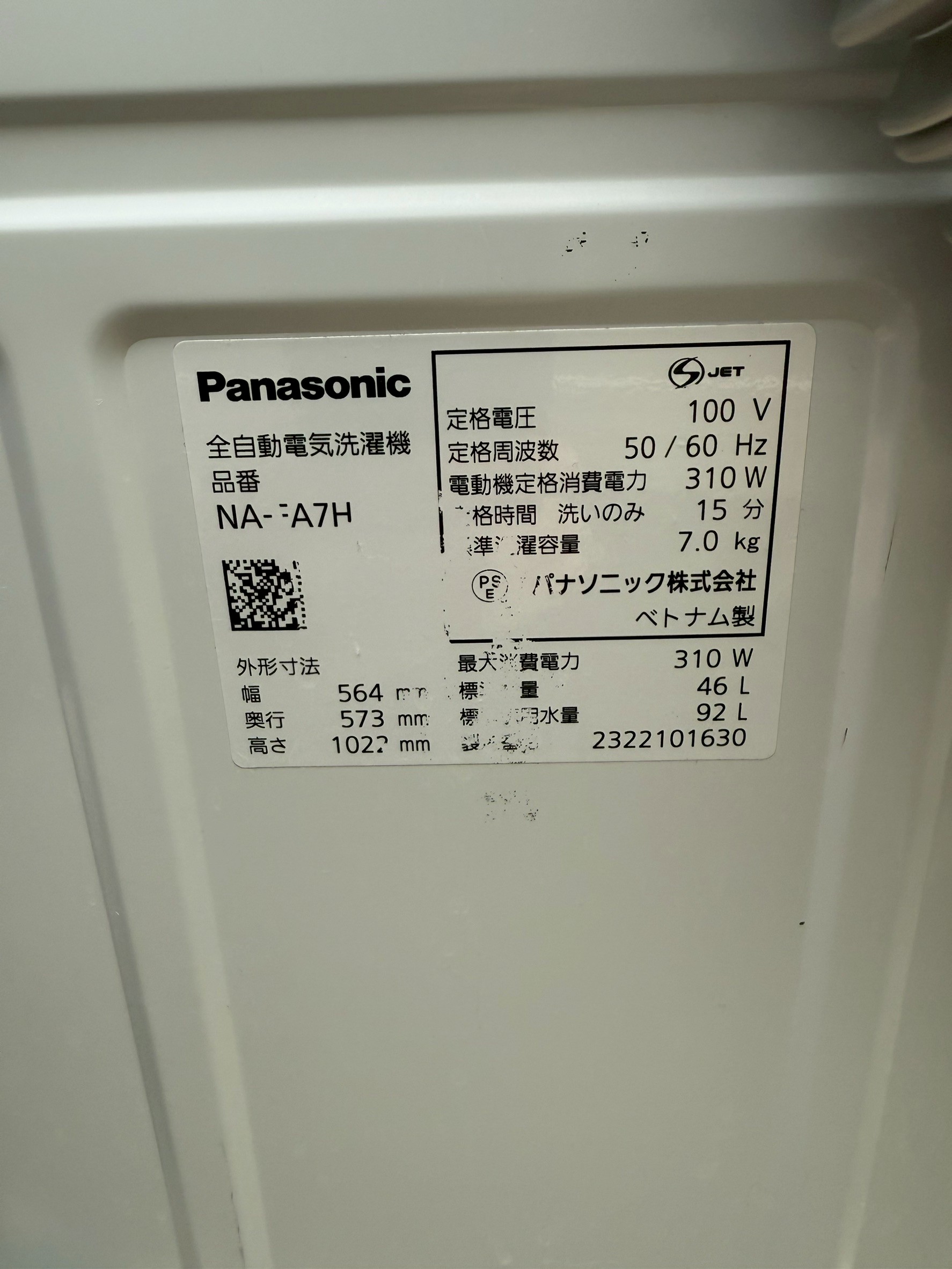 【高価買取】埼玉県川口市にてPanasonic NA-FA7H1 7.0kg 洗濯機 2023年製を出張買取しました|価格重視でのご依頼