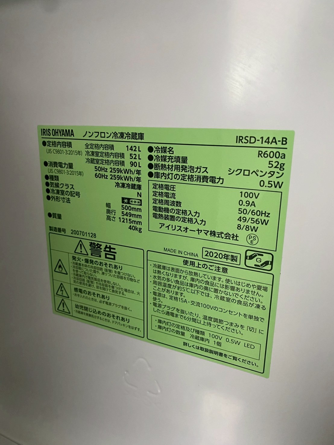 【川口市】IRIS OHYAMAの2ドア冷蔵庫 IRSD-14A-Bを出張買取しました!