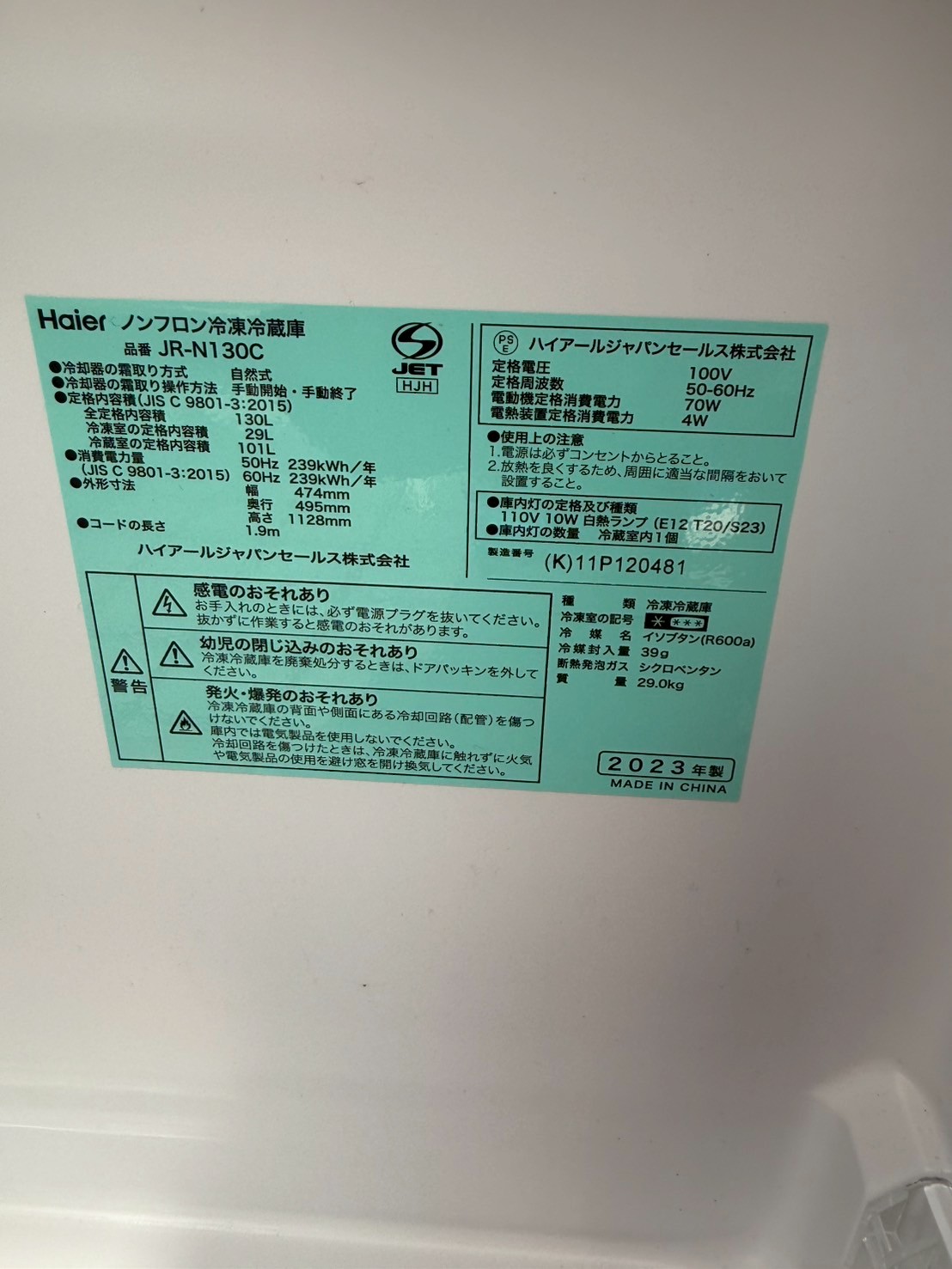 【2023年製】Haier(ハイアール)2ドア冷蔵庫 JR-N130Cを埼玉県川口市で出張買取
